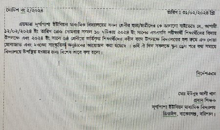 আগামি ১৩ .০২ .২০২৪ ইং তারিখ রোজ সোমবার ২০২৪ ইং সালের এসএসসি পরীক্ষার্থী শিক্ষার্থীদের বিদায় উপলক্ষে দোয়া অনুষ্ঠানের আয়োজন করা । তাই সকল ছাত্রছাত্রীদেরকে যথা সময়ে উপস্থিত থাকার জন্য বলা হল ।